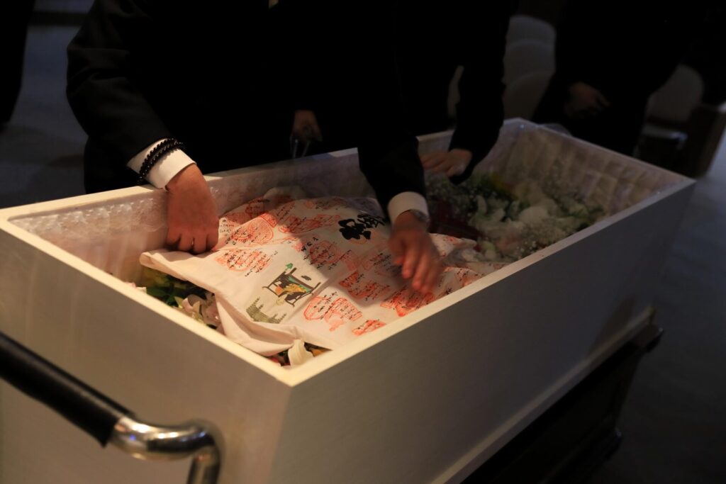 式の最後には、ご家族の手によって納経帳や巡礼用品の一部が丁寧にご納棺され、その瞬間、故人様の旅が本当に完結したような厳かさが会場を包みました。葬儀後「要望に沿った葬儀でした。」と感謝のお言葉をいただきました。