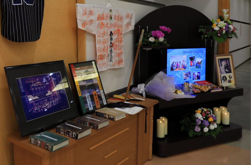 ご葬儀のお打合せでは「お遍路で使用した巡拝用品、納経帳や掛け軸を飾りたい。可能なものは棺に入れて欲しい。」というご希望をいただきました。そこで私は、「故人様の偉業や生前のご様子が伝わるような展示にさせていただきましょうか。」とご提案しました。