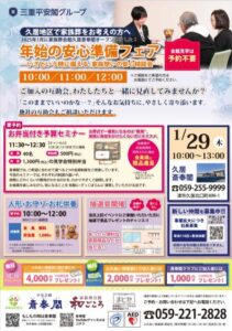 下記日程で家族葬相談会を中心とした「年始の安心準備フェア」を開催いたします。