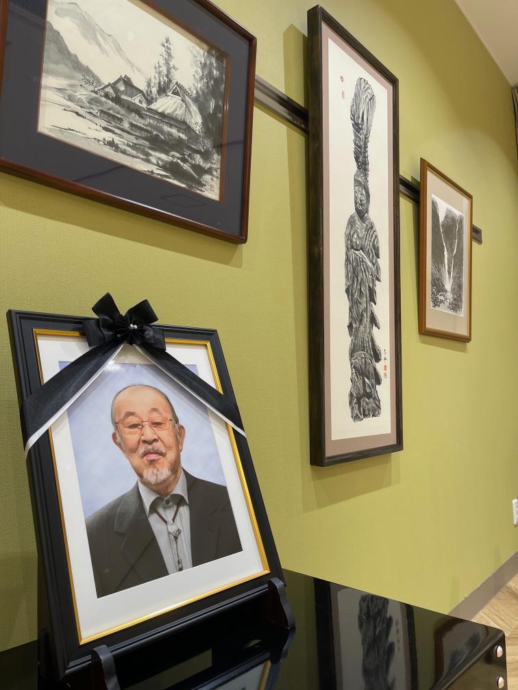会場に並んだ作品を、奥様は誇らしげにご覧になり、参列された方々も足を止めて、静かに故人様を偲ばれていました。