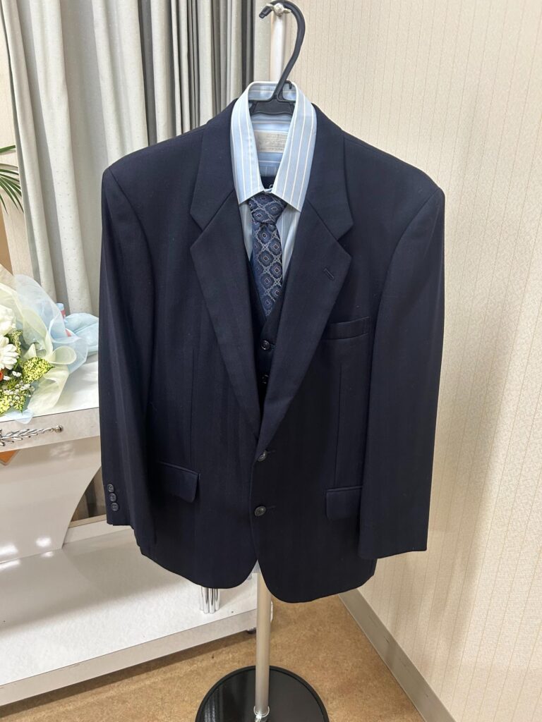 その中で私からご提案したのが、故人様が外出の際に着ておられたお気に入りのスーツを式場内に展示し、最後のお別れの際にご家族の手で棺に納めて差し上げるということでした。日常の中で大切にされていたものをそばに感じながらのお別れは、きっと心に残る時間になると思ったからです。この提案に対し、ご家族様は喜んで受け入れてくださり、好きだったお菓子もお供えして入れてあげることになりました。