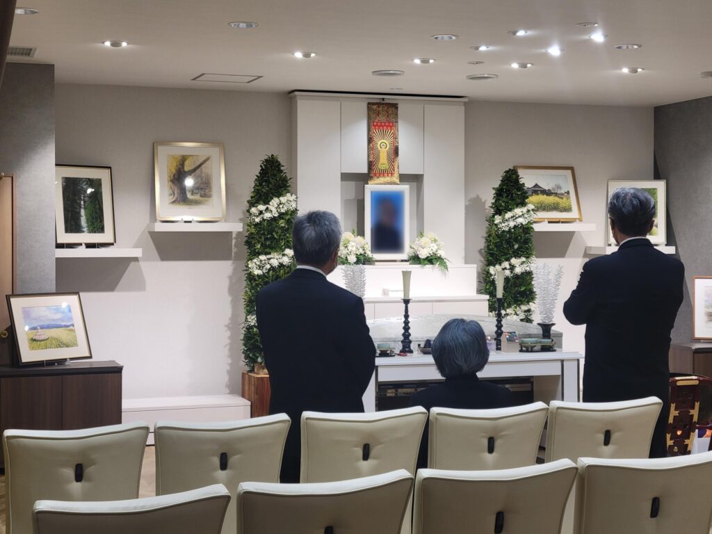 式が進む中で、ご家族様が何度も展示された絵に目を向け、そっと頷かれる姿が印象的でした。「お父さんの絵画が家族みんなが好きだった」「それぞれの自宅に飾ってある」と伺い、絵を通して今もなお、ご家族様の暮らしの中に故人様が生き続けているのだと感じました。