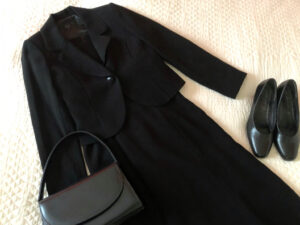 ただし、正喪服のような和装や格式高いブラックフォーマルは必要なく、黒のアンサンブルやワンピースで問題ありません。